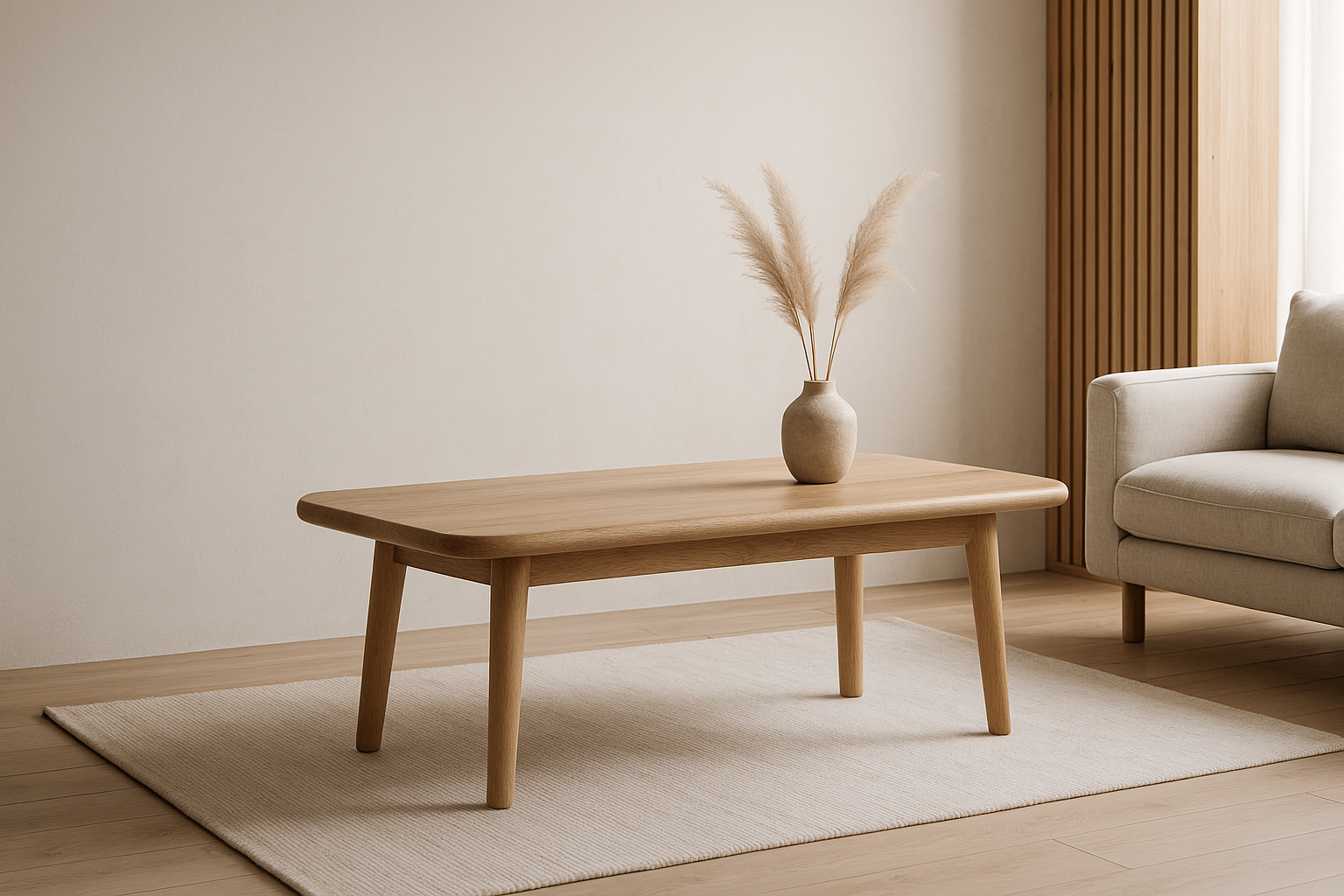 Warm Japandi pieces in real wood and soft lines—quiet design that makes small spaces feel bigger, with exact sizes and honest materials that calm the room.